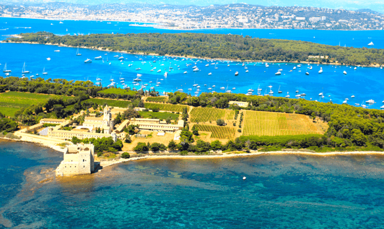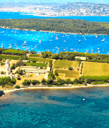 La croisière se poursuit ensuite vers les îles de Lérins : Sainte-Marguerite et Saint-Honorat, deux îles magiques chargées d'histoire et baignées d'eaux turquoise. Le mouillage entre les deux îles offre un cadre paradisiaque pour la plongée avec tuba, le paddle ou simplement la détente sur le pont. Un déjeuner dans un restaurant de plage à Cannes peut être organisé (ou à bord sur demande). Sur l'île Saint Honorat les produits des moines de l'Abbaye de Lerins sont proposés, une bonne occasion de repartir avec du vin à servir à la rentrée pour faire revivre cette journée avec vos amis !